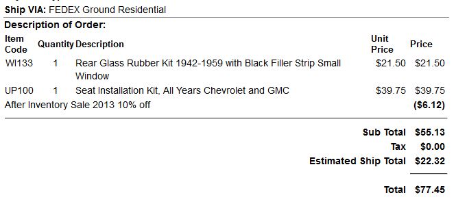Was about to pull the trigger for seat covering material from Jim Carter Truck Parts... well, until I saw their shipping charges: