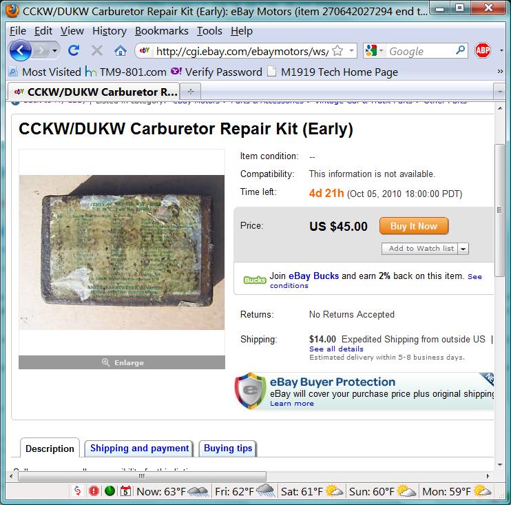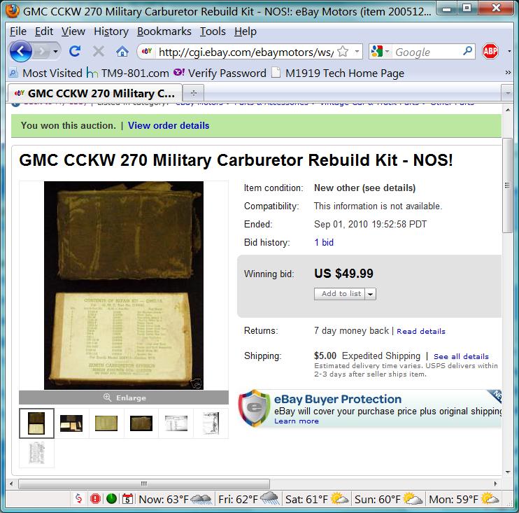 Since I would like to have a spare rebuild kit, I ask him to open the box a verify that the 'NOS' parts are still in usable condition. My main concern is that shipping is $14 to me, and if the parts are rusted (mainly the accelerator pump parts), its $14 to ship it back ($28 to return a $40 item).