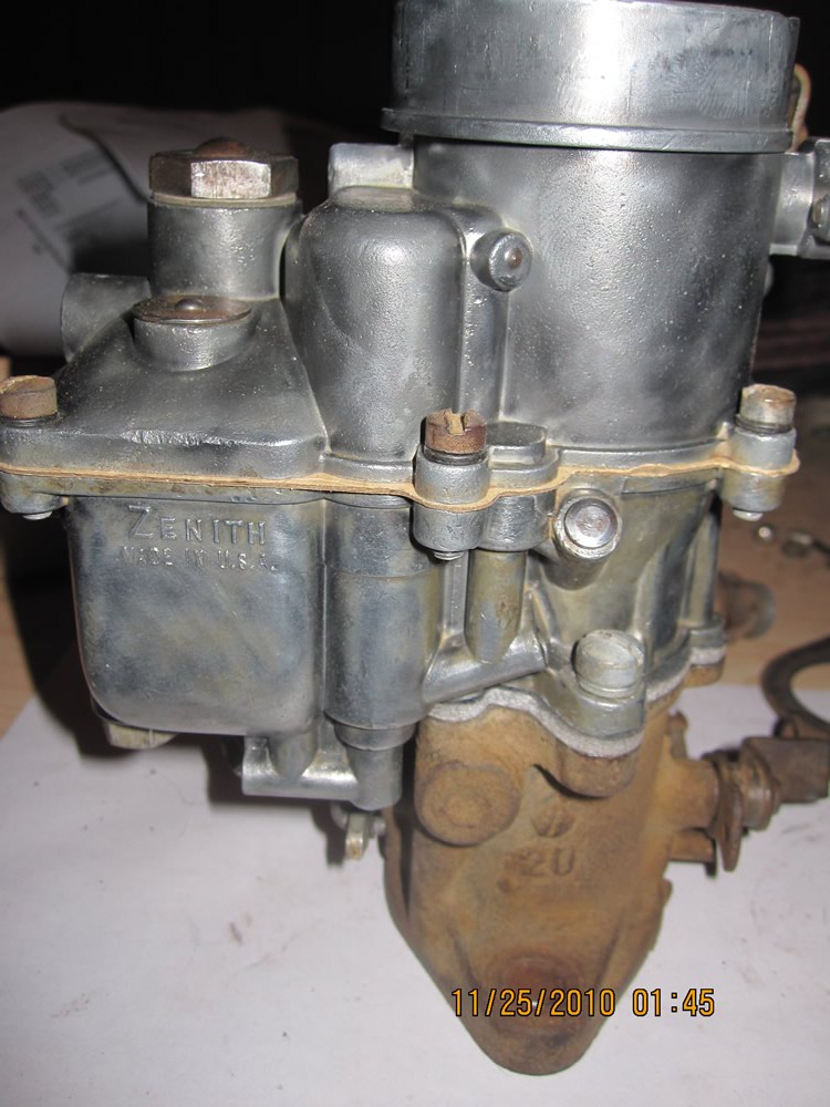 Note the fuel bowl is simply ZENITH over Made in the U.S.A. No bendix or script font. Also note the throttle body has a 20 cast into it. There is also a 7 under the boss where the fixed idle port is pressed in.