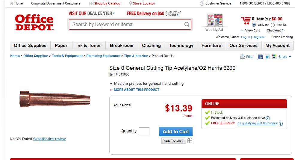 Office Depot... the first choice in your welding supply needs? Its under the category 'Plumbing supplies'?
