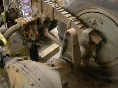 Here are some pics of the rear rear axle finally getting freed from the torque rods.