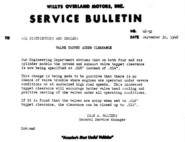 If there was a change to put all L heads to .016 why, in 1948 did Willy have to issue a Service Bulletin? The change was made (according to some) back in 44.