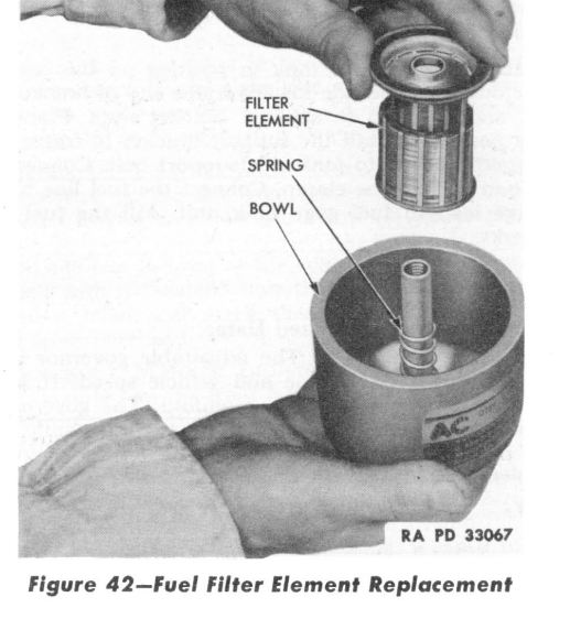 If you look in the sae manual from TM-WW2 (the SNL G506 - '44), there is another photo that clearly shows the "other" type of decal on the fuel filter. This could also have been in the maintenance manual that I bought from TM-WW2 at the same time. I'll try to find the pic I'm referring to, and post a pic. The same manual(s) show both type of oil filter decals (early round, and late oval). I have yet to find a pic of an air filter with a decal. I've found decals on: