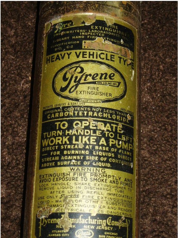 These extinguishers were recalled in the late 1950s when scientists discovered just how dangerous Carbon Tetrachloride can be.