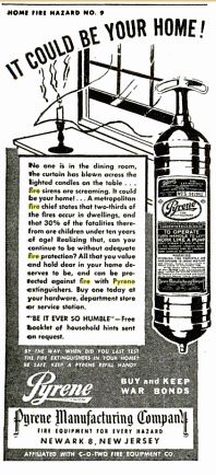 "The label has the postal zone number 8 for Newark, NJ. The USPS zone numbers started in 1943 and went to 1963 when zip codes started. After 1947, Pyrene didn't have the 8 on that label."