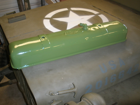 This is on my jeep hood to give a better idea what it would look like in an engine bay surrounded by 319 WWII Lusterless paint.