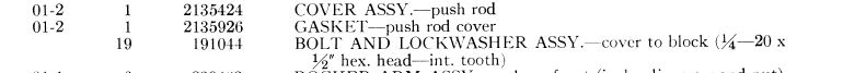 TM10-1562 (May, 1943) was the last TM10 parts book, and the tappet cover lists "Bolt and lockwasher 1/4-20x1/2 HEX HEAD int tooth" PN 191044