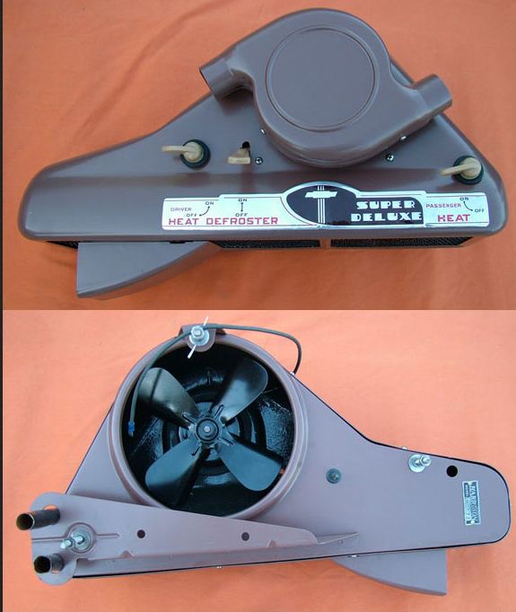 The Harrison heaters of the 30's are vastly different. They were very art deco and rarely more than simple fans on top of cores, with doors as baffles. Not till the mid 40's can I find heaters like Chevrolet SUPER DELUXE heaters.