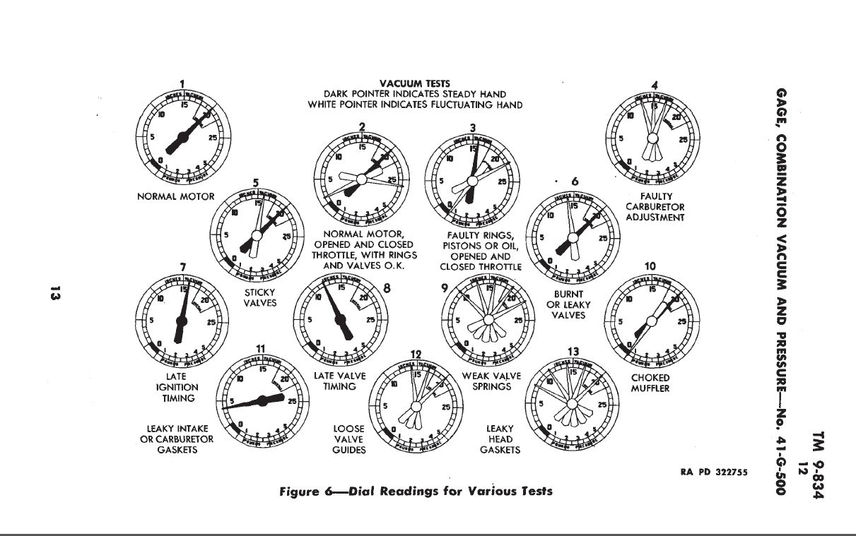 Reading a vacuum gauge is fundamental in knowing how your engine is operating. Here is a page from TM9-834 1 June 1944... tells you all you need to know.