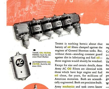 This ad is VERY INTERESTING as previous research lead me to believe that the AC S-2 civilian oil filter was the 'descendant' of the Military Senior oil filter. That apparently is a questionable statement.