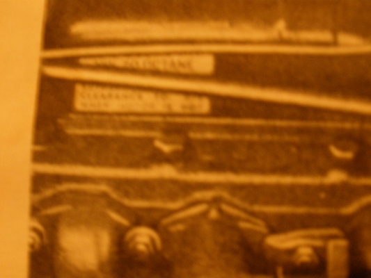 Here is the most hard to find decal.. evidently the deep sump oil pans had *something* on them. In this picture you can clearly see the engine spec tag, and below that the decal in question: