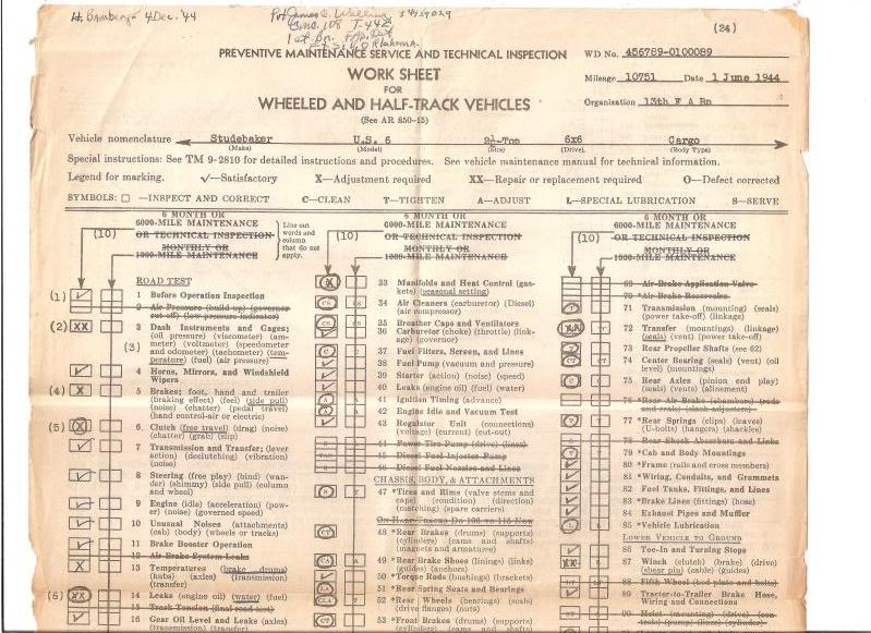 While this PM sheet is for a US 6x6 its still interesting to see it filled out.