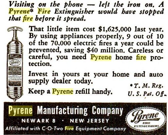 So Carbon Tet extinguishers went away by the 1960's. So that puts a 'top end' to the pyrene carbon tet line.